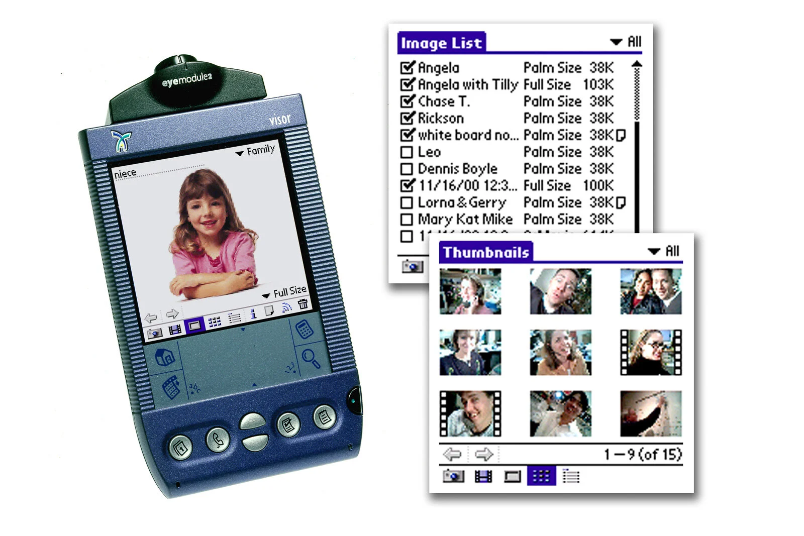 Twenty years ago there were no UX precedents for capturing, managing or sharing photos on phones. My very first project at IDEO was helping to design the UX of the “eyemodule” series of accessories. They added camera functionality to the Handspring PDA, creating the first camera-enabled handheld device.
